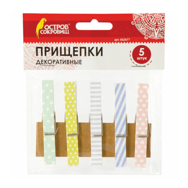 Декоративные прищепки "Пастельные тона" 5шт, 72мм деревянные 662677 Остров сокровищ