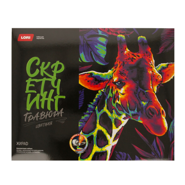 Набор для творчества Lori "Скретчинг. Неоновые животные. Жираф" гравюра 30*40см, карт.уп Гр-778