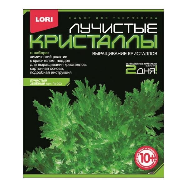 Набор для творчества Lori Лучистые кристаллы "Зеленый" выращивание кристаллов, карт.уп. Лк-003