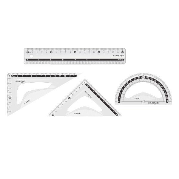 Геометрический набор 4предм.(линейка 20см, угольники 45° и 60°, транспорт.) KR973347 Keyroad