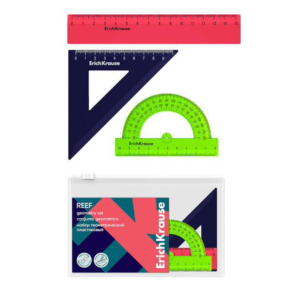Геометрический набор 3предм.(линейка 15см, угольник 45°, транспортир) "Reef" 63197 Erich Krause