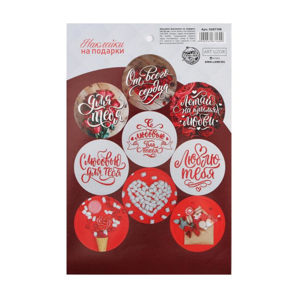 Наклейки декоративные "С любовью" на подарки, 14*21см 5267169 Арт Узор