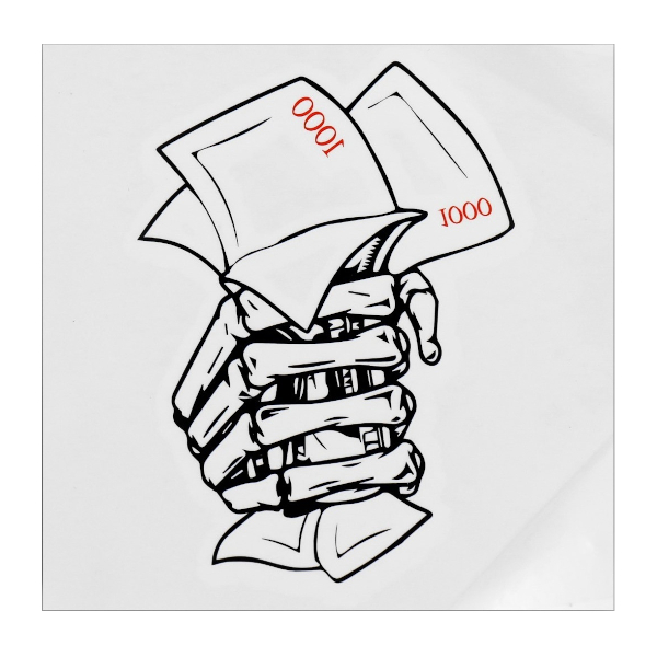 Татуировка на тело "Деньги в руке скелета" черно-красный, 6*6см 10537328 Арт Узор