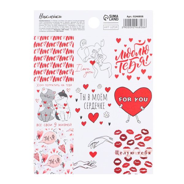 Наклейки "Сердечки" 11*15,5см, 9шт 9246808 Дарите Счастье