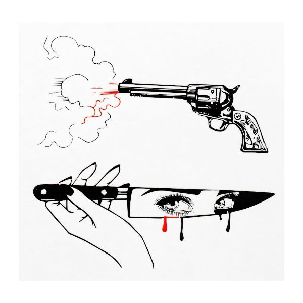 Татуировка на тело "Нож и пистолет" черно-красный, 6*6см 10537326