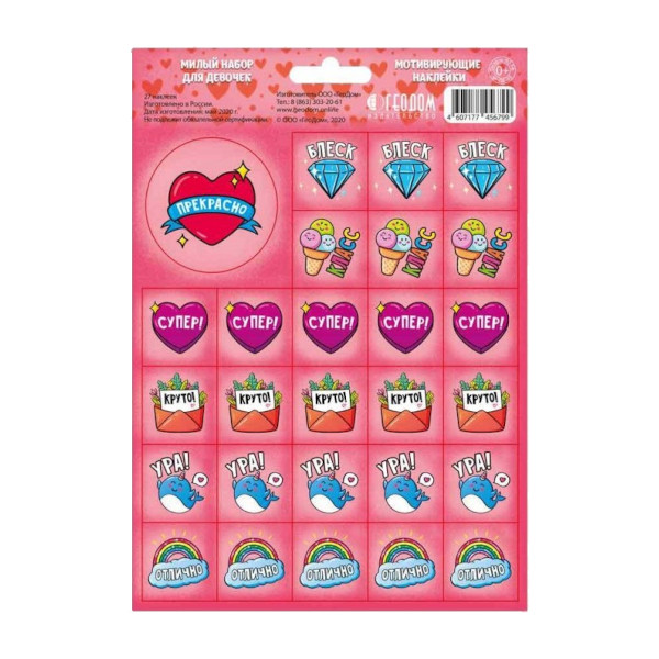 Наклейки мотивирующие " Милый набор для девочек" 27шт 4607177457444 ГеоДом 1лист