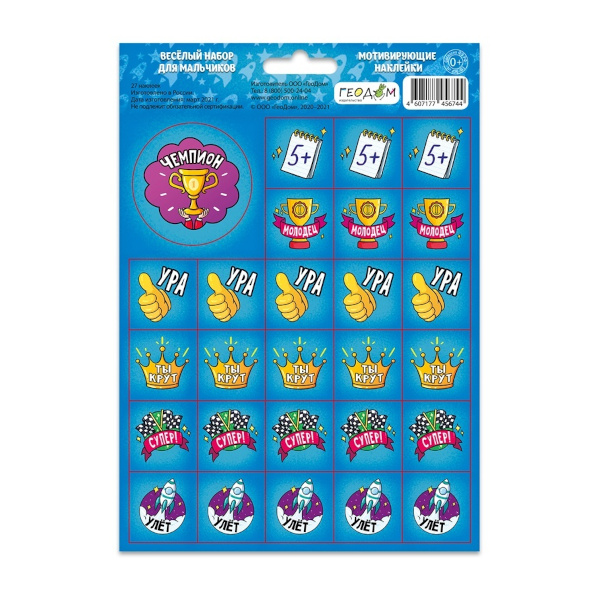 Наклейки мотивирующие " Весёлый набор для мальчиков" 27шт 4607177457468 ГеоДом 1лист
