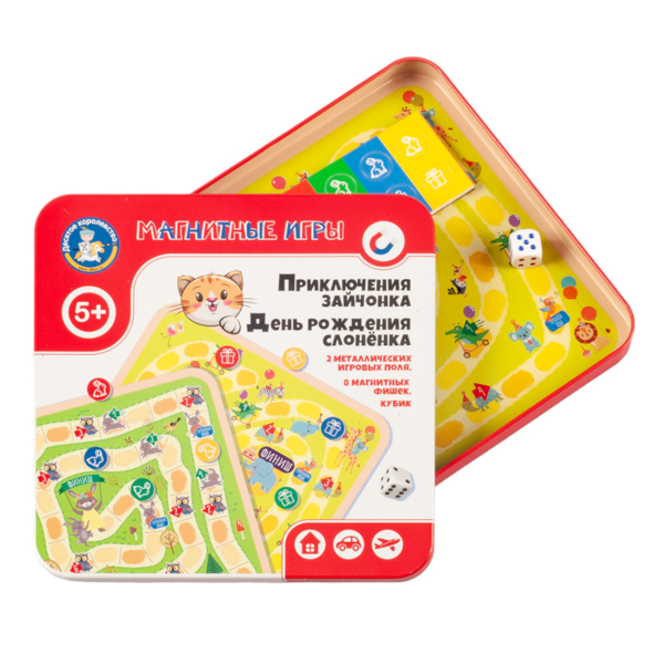 Игра магнитная "Приключения зайчонка. ДР слоненка" жест. коробка 04912 Десятое королевство