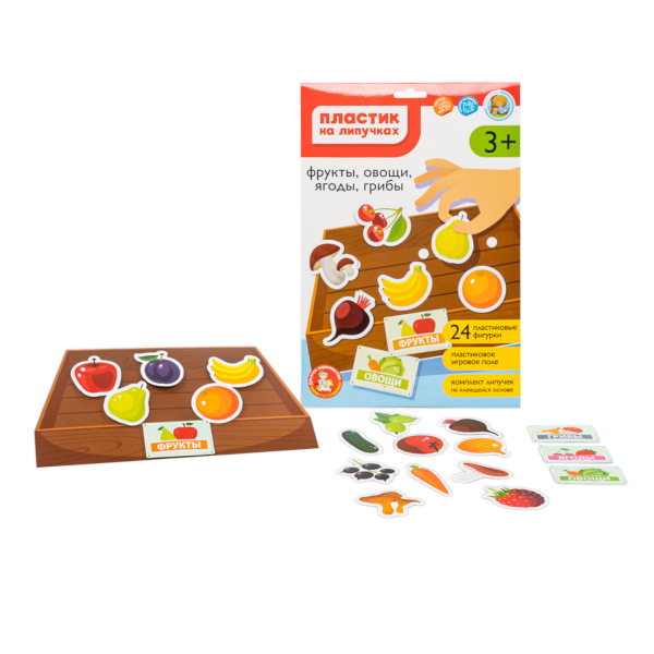 Игра развивающая "Фрукты, овощи, ягоды, грибы" пластик на липучках 05201 Десятое Королевство