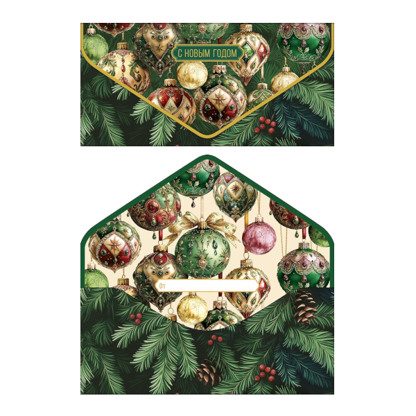 Открытка-конверт для денег "С Новым Годом. Драгоценные шары" 9,3*19см 1216.346 Арт Дизайн