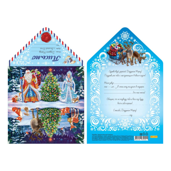 Открытка "Письмо Деду Морозу. Дед Мороз, Внучка и лесные звери" ПД-6043 Миленд