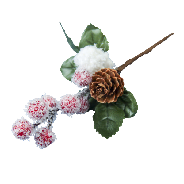 Декор "Еловая ветка. Грезы" листья, шишка, ягоды, 18см 3573512 Зимнее волшебство