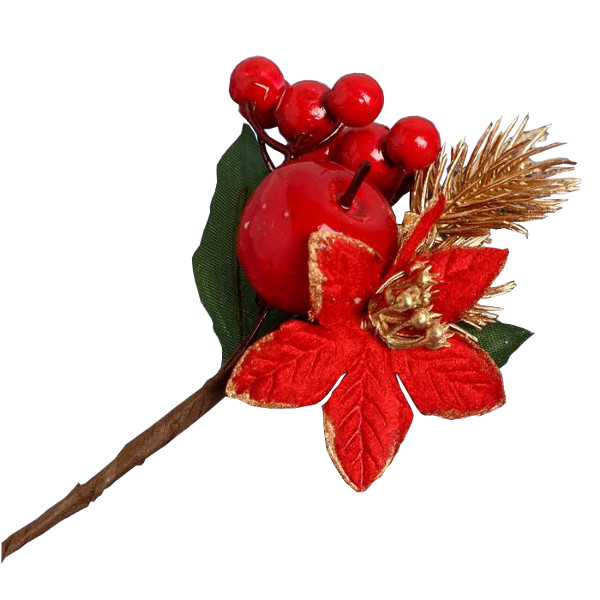 Декор "Зимнее очарование" цветы, ягоды, хвоя, золото 13см 5046893