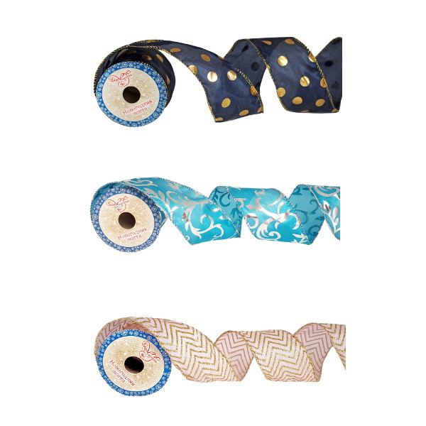 Лента декоративная полиэстер 6,3*270см, катушка, ассорти 80816/80813/80811