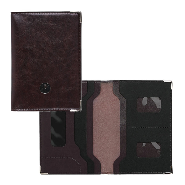 Обложка для автодокументов "Silver. Коричневый" иск. кожа, метал. уголки ККФ0171 Listoff