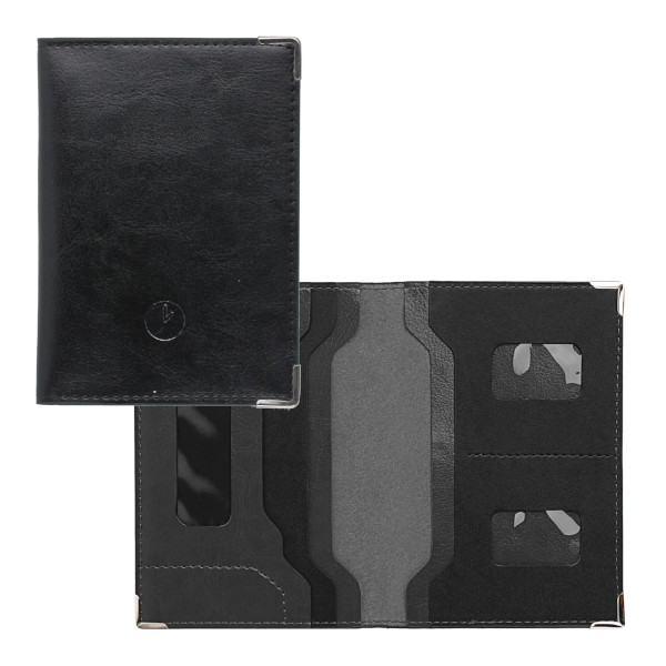 Обложка для автодокументов "Silver. Черный" иск. кожа, метал. уголки ККФ0168 Listoff