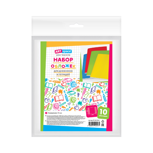 Набор обложек 210*350мм для тетради и дневника, полипропилен, 70мкм PP 210.70(Н) ArtSpace (10шт)