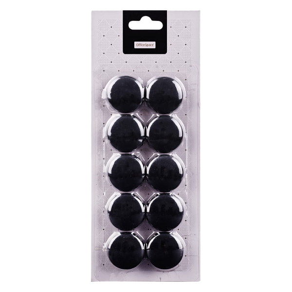 Магнит для белой доски 30мм, 10 шт, круглый, черный, блистер MN30_7249 OfficeSpace