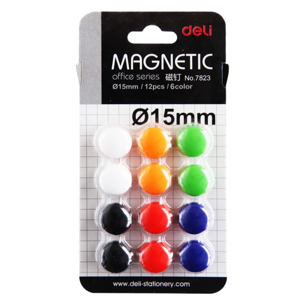 Магнит для белой доски 15мм, 12шт, круглый, ассорти E7823 Deli