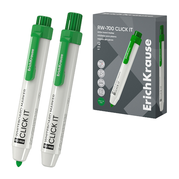 Маркер автомат. для доски 2мм, спирт. осн., пулевид., зеленый, пластик. "RW-700 Click it" 60833 EK