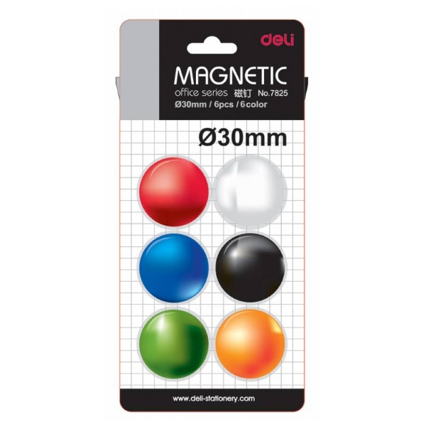 Магнит для белой доски 30мм, 6шт, круглый, ассорти E7825 Deli