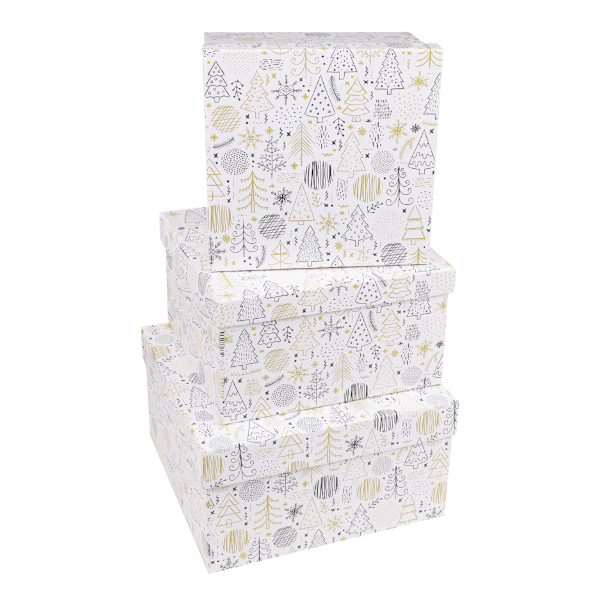 Набор квадратных коробок 3в1 19,5*11/17,5*10/15,5*9см "Абстрактный новогодний лес" НК-0508