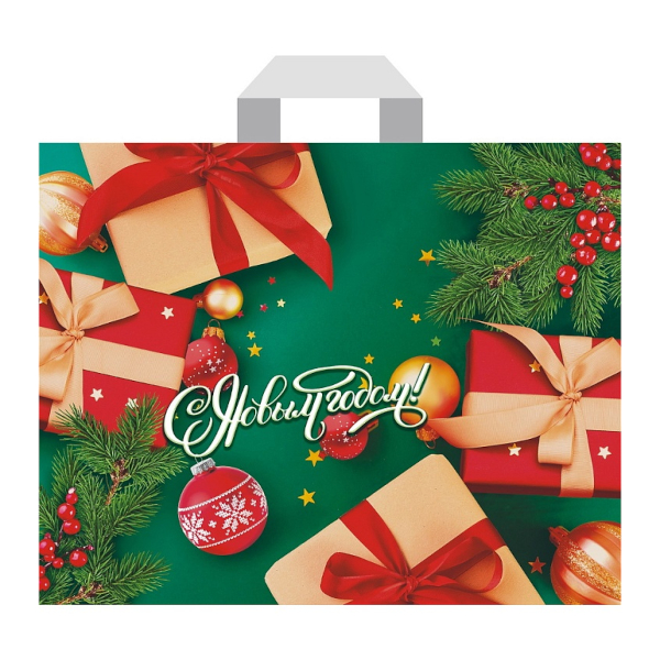 Пакет полиэтиленовый 45*38см "Новогодние подарки" 60мкм, вырубная ручка н00223879 Миленд