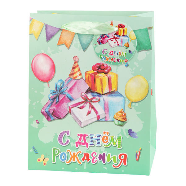 Пакет бумажный 23*18*10см "С днем рождения 01. Подарки" BASS Stilerra