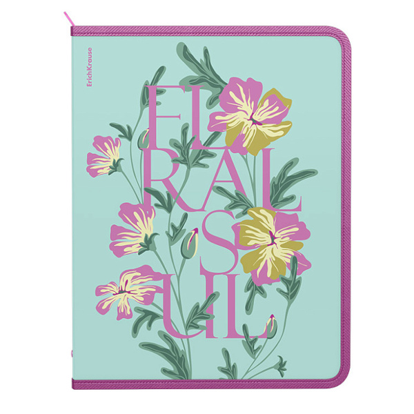 Папка для тетрадей А4+ 1отд., пластик, молния "Floral Soul" 63516 Erich krause