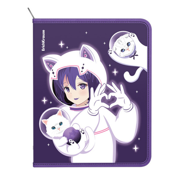 Папка для тетрадей А5+ 1отд., пластик, молния "Space Anime" 61197 Erich krause