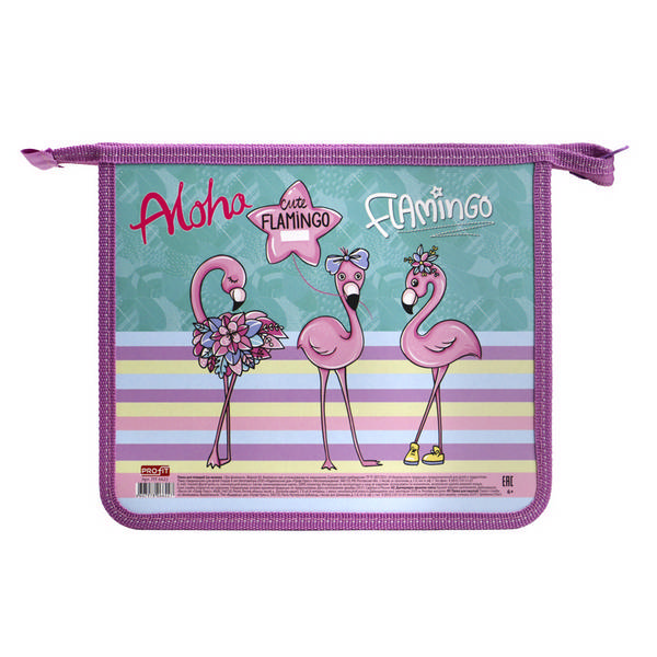 Папка для тетрадей А5 1отд., пластик, молния "Три фламинго" ПТ-6622 Проф Пресс
