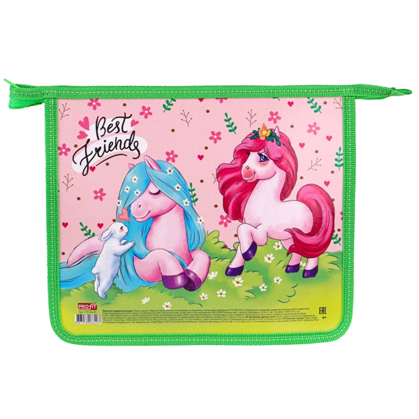 Папка для тетрадей А5 1отд., пластик, молния "Пони и зайчик" ПТ-6620 Проф Пресс