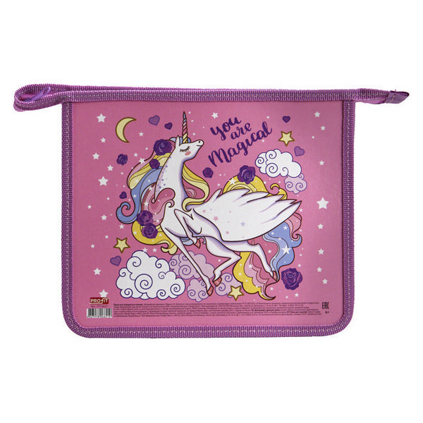 Папка для тетрадей А5 1отд., пластик, молния "Волшебный единорог" ПТ-6621 Проф Пресс
