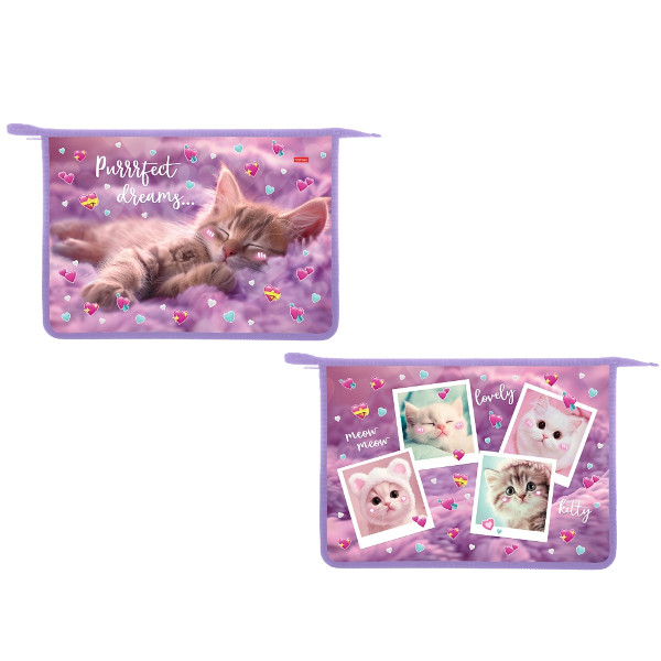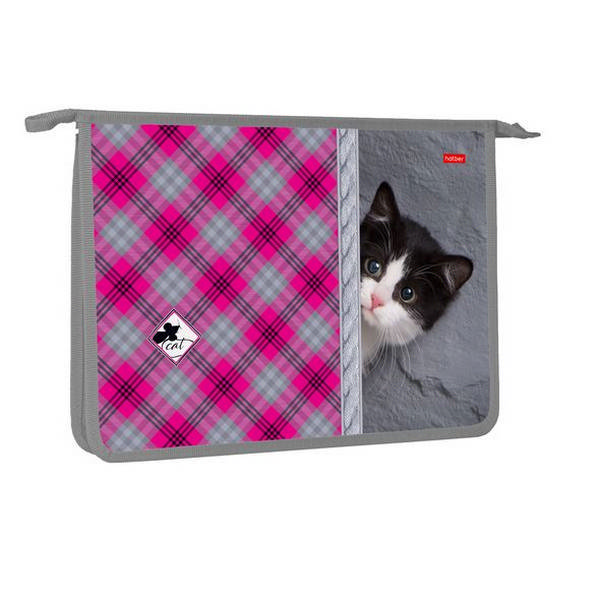 Папка для тетрадей А4 1отд., пластик, молния "Кошка" AMc_71045 Hatber