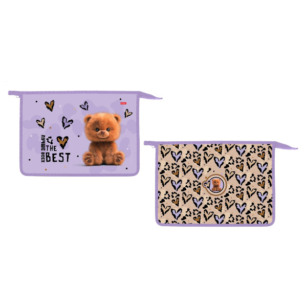 Папка для тетрадей А4 1отд., пластик, молния "Пушистый мишка" AMc_03033 Hatber