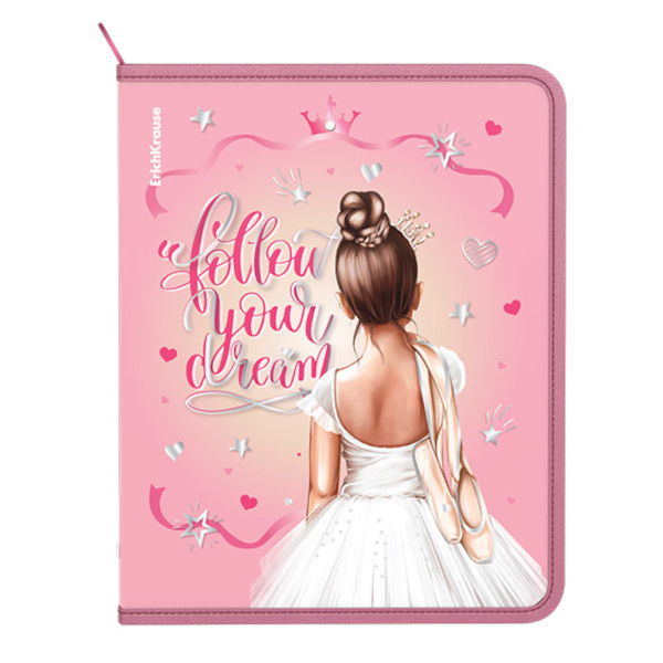 Папка для тетрадей А4 1отд., пластик, молния "Балерина" AMc_71042 Hatber