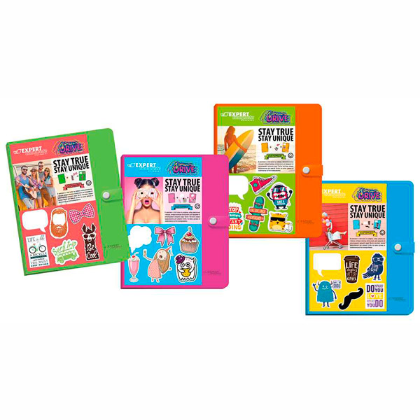 Папка с зажимом, кнопка А4, 17мм, 600мкм ассорти "Neon Drive" 2550794 Expert Complete
