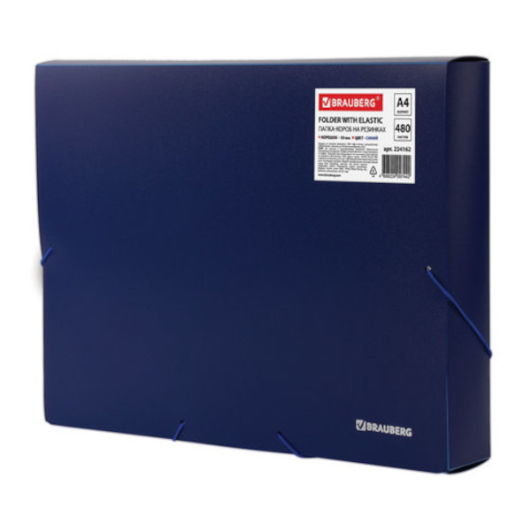 Папка на резинках объемная А4, 1отд., 700мкм, 50мм, синяя 224162 Brauberg