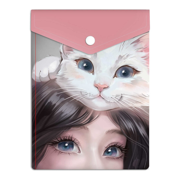 Папка-конверт на кнопке А6 (158*114мм), 1отд., 180мкм, рисунок "Кошачьи нежности" 69023 Феникс+