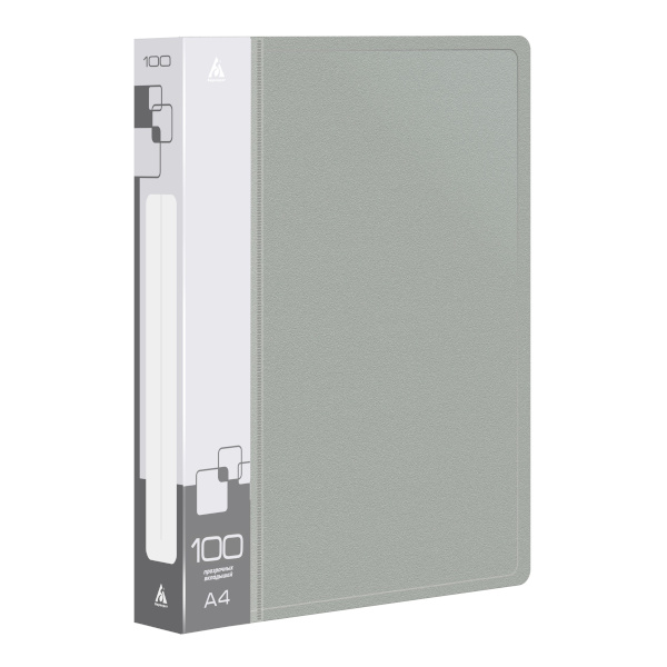 Папка 100 файлов А4, 39мм, 800мкм, карман корешок, серая BPVN100GREY Бюрократ