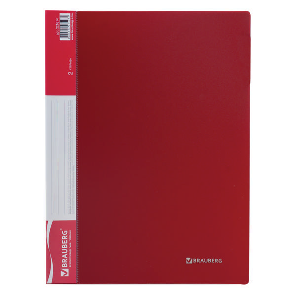 Папка 2 кольца А4, 25мм, 800мкм, карман/корешок+внутрен., красная "Стандарт" 221614 Brauberg