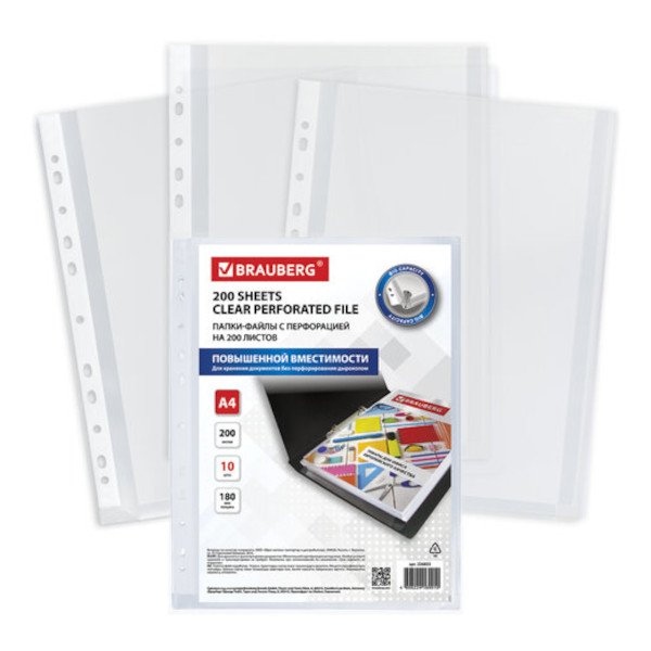 Файл (мультифора) А4 180мкм, прозрачный, глянцевый, расширяющийся 226833 (уп 10шт) Brauberg упак