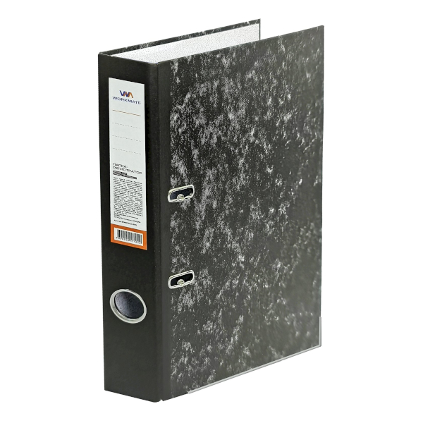 Файл А4, 50мм, картон, кант, мраморный черный 15-8117 Workmate