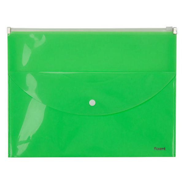 Папка на молнии "ZIP" А4, пластик, 180мкм, 2отд., салатовая 1430-09-A Axent