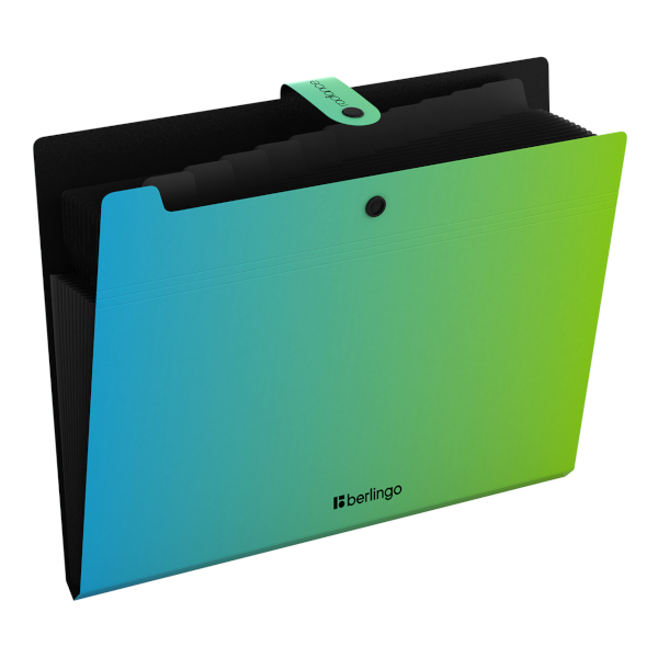Папка-конверт на кнопке А4, 12отд., 600мкм, голубой/зеленый "Radiance" XF4_12003 Berlingo