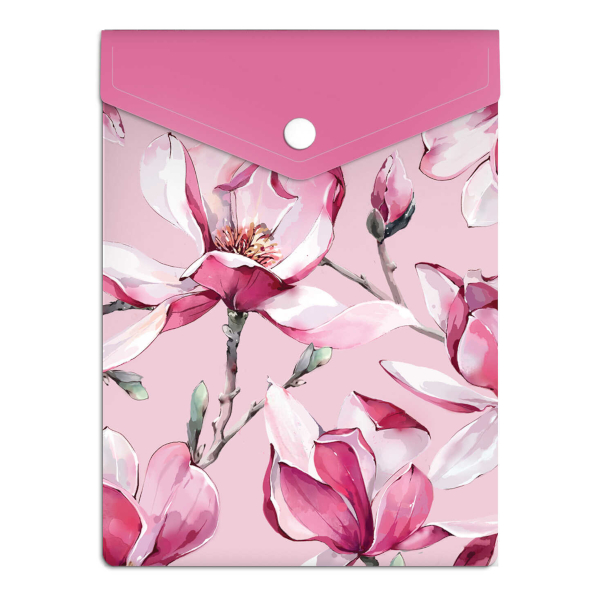 Папка-конверт на кнопке А6 (158*114мм), 1отд., 180мкм, рисунок "Розовая магнолия" 72380 Феникс+