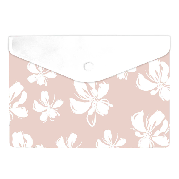 Папка-конверт на кнопке А5, 1отд., 180мкм, рисунок "Цветы на бежевом" 72377 Феникс+