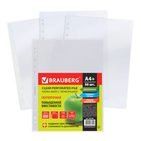 Доп. описание: Перфорированные папки-файлы BRAUBERG предназначены для хранени...