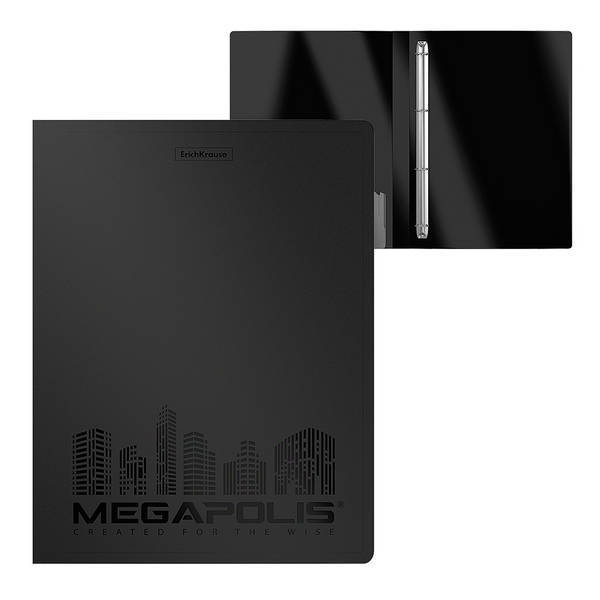 Папка 2 кольца А4, 24мм, 600мкм, карман внутрен., черная "Megapolis" EК46002/50515 Erich Krause