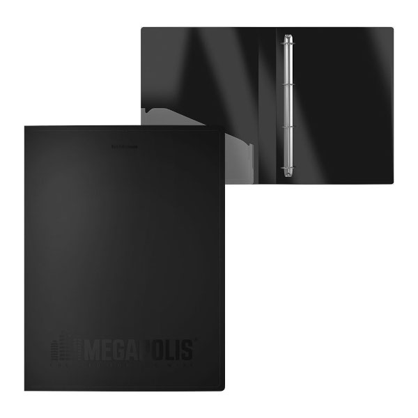 Папка 4 кольца А4, 24мм, 600мкм, карман внутрен., черная "Megapolis" 50516/46004 Erich Krause